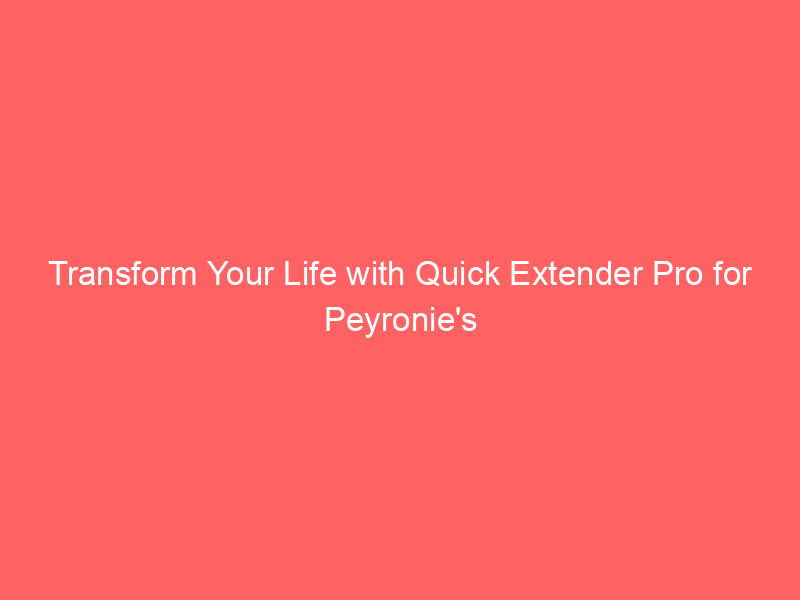 Transform Your Life with Quick Extender Pro for Peyronie’s